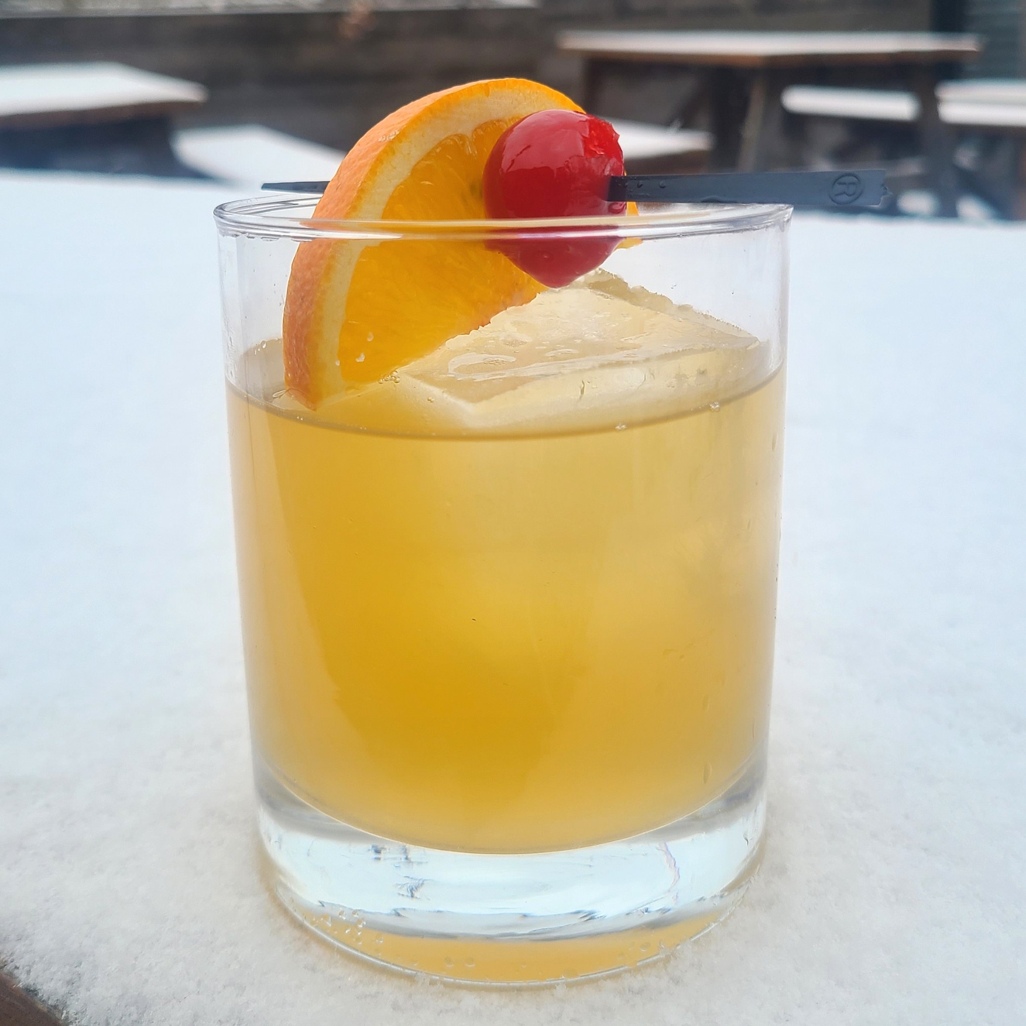 Barrel-aged double hard seltzer, brown sugar, orange simple syrup, and bitters